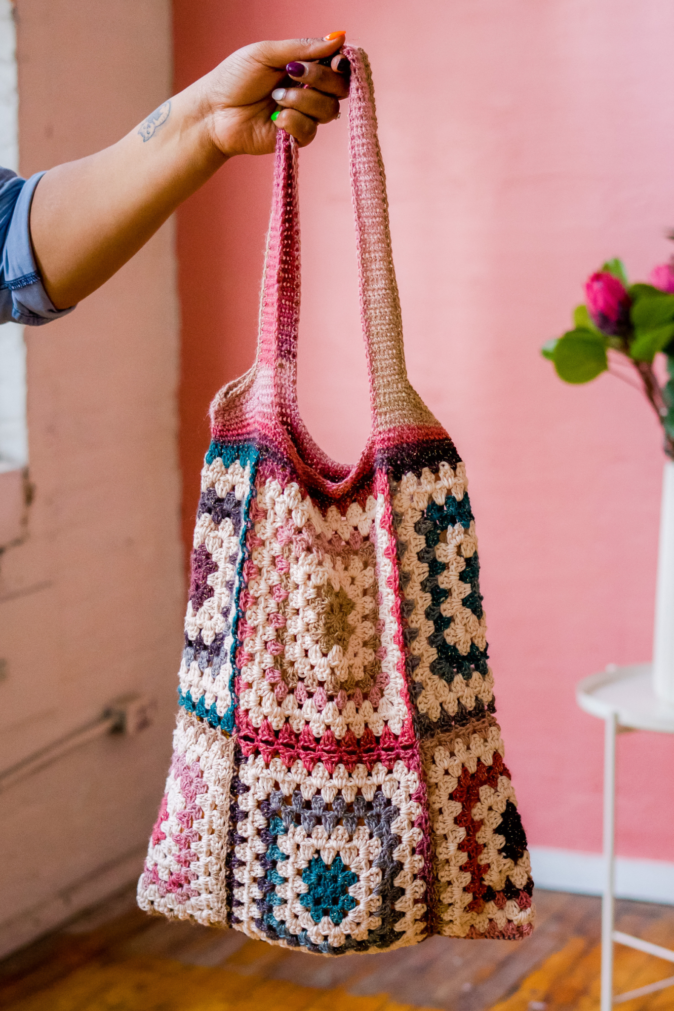 Granny Square Tote Bag (Hopelessly Devoted Crochet): This pattern offers a different, beautiful colorway to inspire your own granny square tote creation. Get the pattern here.