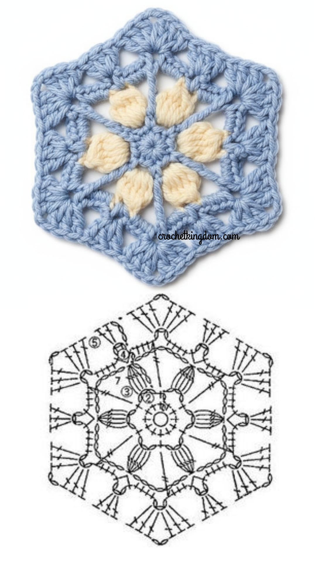 Soft pastels, sweet shapes, and five gorgeous FREE hexagon crochet patterns you can use to make the perfect baby blanket. These motifs work beautifully in baby blues, blush pinks, mint greens, lemon yellow, and lavender. Quick to make, easy to join, and perfect for beginners or seasoned crocheters looking for a fresh project.