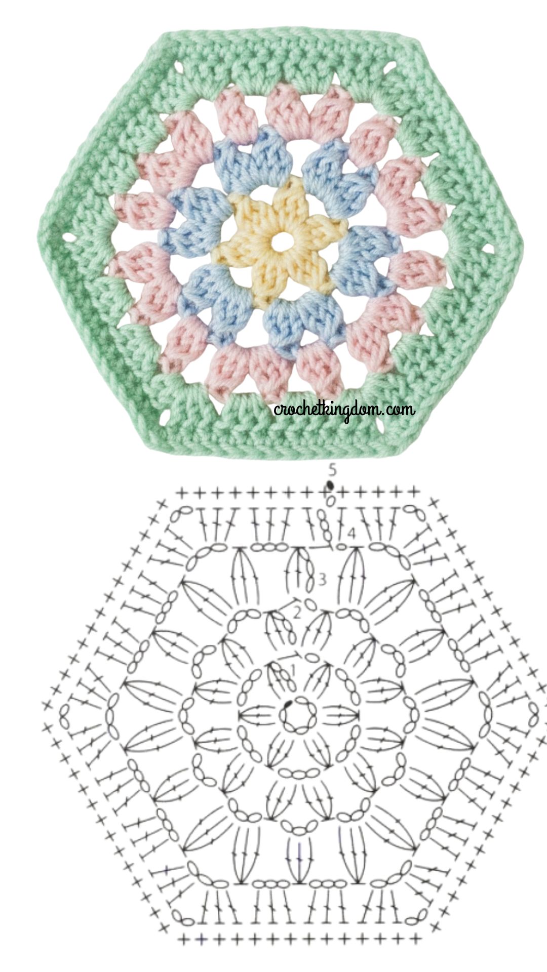 5 FREE Hexagon Crochet Patterns in Baby Color Schemes for Blankets.