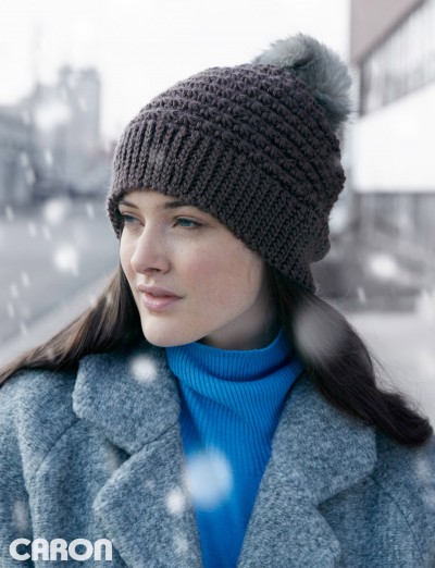 Highly textured, and also easy to complete, this Stepping Texture Hat is crocheted in Bernat Softee Chunky.