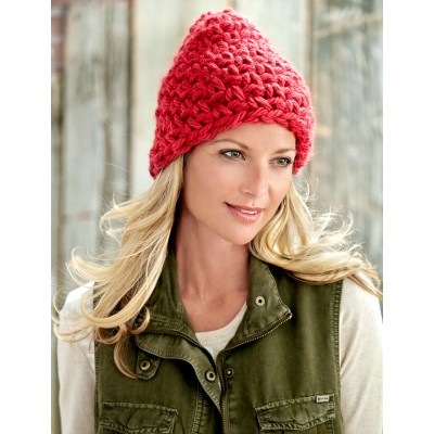 This unique beanie is crocheted in Caron Simply Soft yarn. Great for intermediate crocheters.