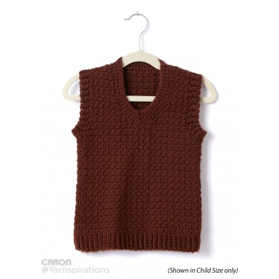 Dress up that classic button-up with this simple and elegant crochet V-Neck Vest made in Caron Simply Soft.