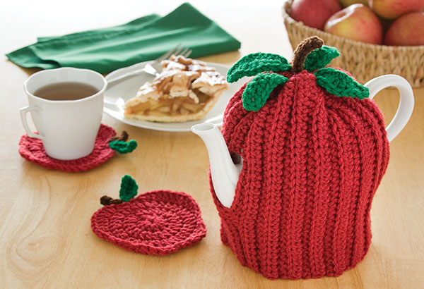 Apple Tea Cozy & Coasters Free Crochet Pattern.