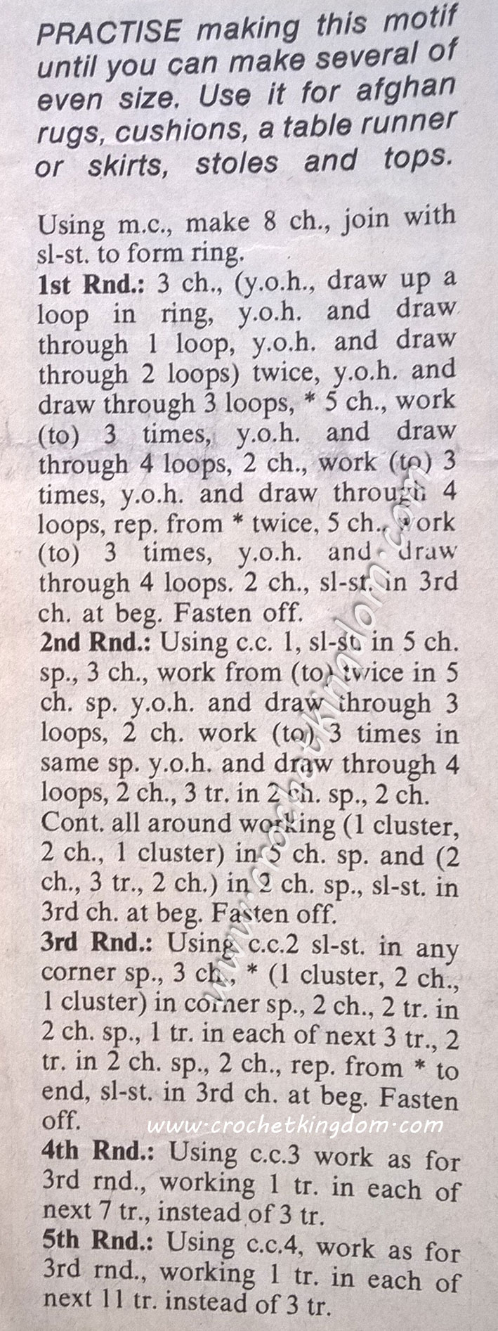 HomeCrochet SquaresBeginner Square Motif – Vintage Crochet PatternBeginner Square Motif – Vintage Crochet Pattern Crochet SquaresBeginner Square Motif – Vintage Crochet Pattern.Practice making this square motif until you can make several of even size. Use it for afghan, rugs, cushions, a table runner or skirts, stoles and tops. Tags:Crochet Kingdom Vintage PatternsLeave a Reply Cancel replyCommentThis site is protected by reCAPTCHA and the Google Privacy Policy and Terms of Service apply.The reCAPTCHA verification period has expired. Please reload the page. Δ