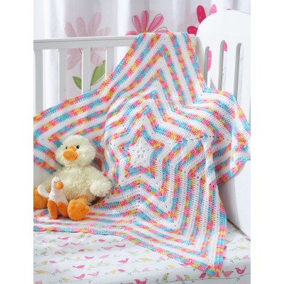 Free star shaped crochet baby blanket. Beautiful striped star baby blanket radiates outward in Bernat Baby Coordinates.