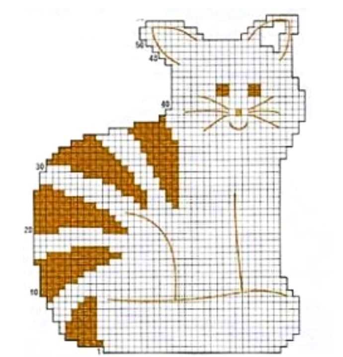 Finishing: Lightly steam the potholder. Embroider the cat’s face with stitch embroidery according to the chart.
