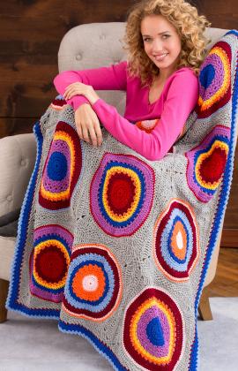 Brightly-coloured circles stand out on a neutral background in this popular throw free pattern. Change the shades to match your home for a oneof- a-kind crochet project.