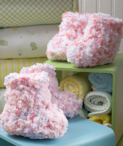 Cute booties made with novelty yarn for a super fun, warm and fuzzy stylish look!