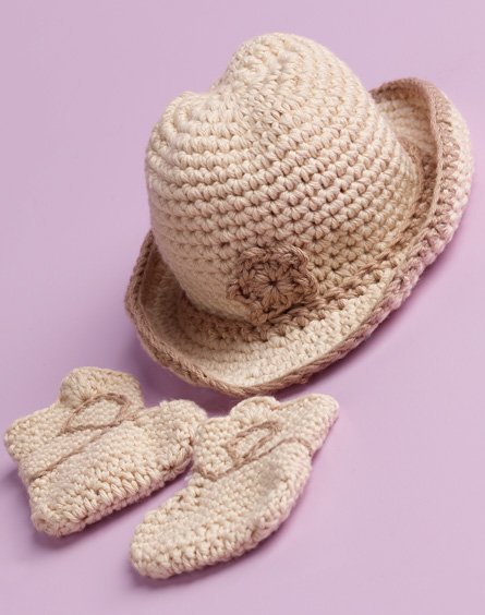 Cotton Wool Cowboy Hat and Booties Free Crochet Pattern.