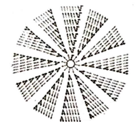 Вязать по схеме донышка, выполняя прибавления в первом столбике каждого клина.