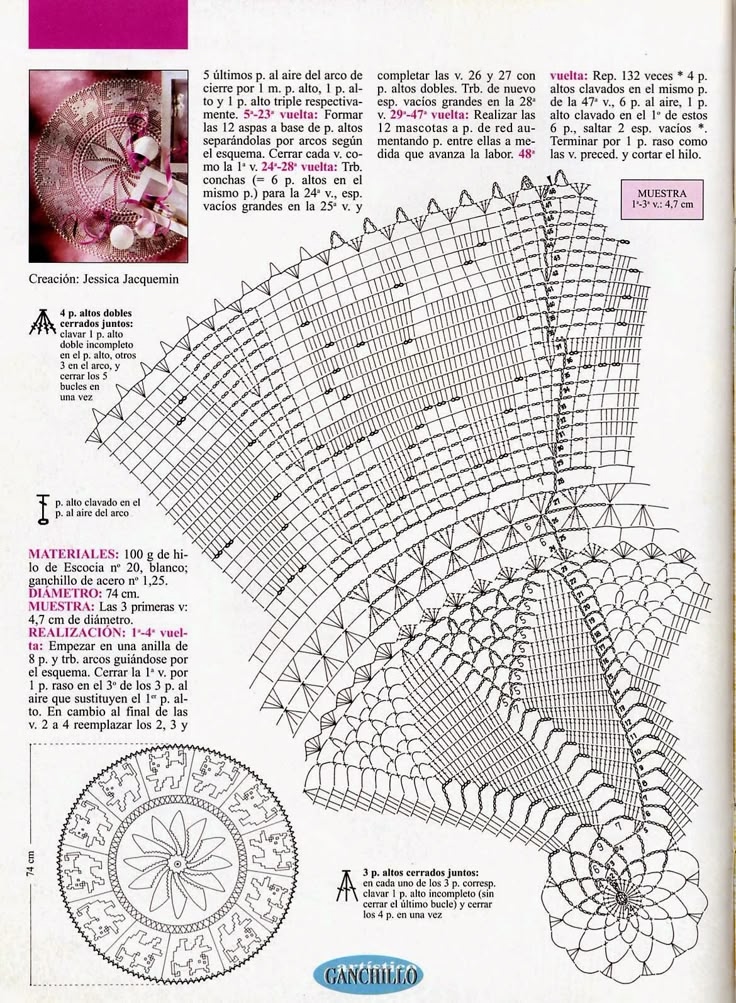 This doily measures 74 cm in diameter when worked with fine cotton thread, making it a stunning large piece for display.