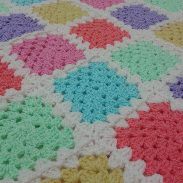 Repeat round three until desired size of granny square is achieved.