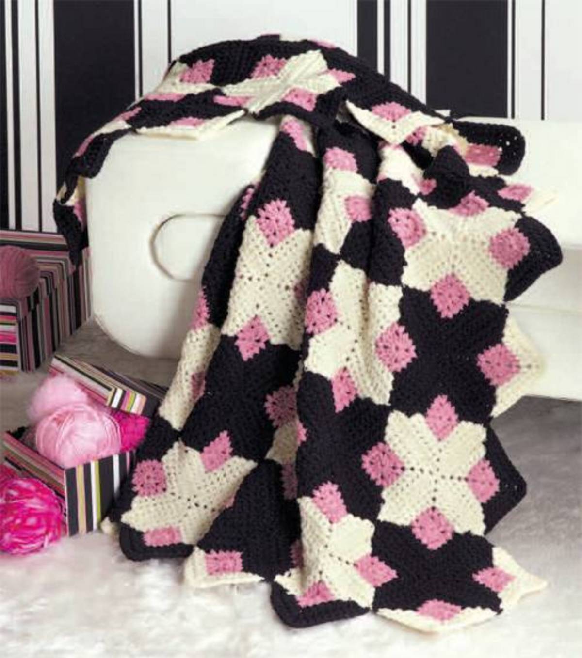 Crochet Retro Afghan Free Pattern. A dainty bedspread from the 30’s takes on a new life as a graphic mod throw with just a quick yarn update and color change.