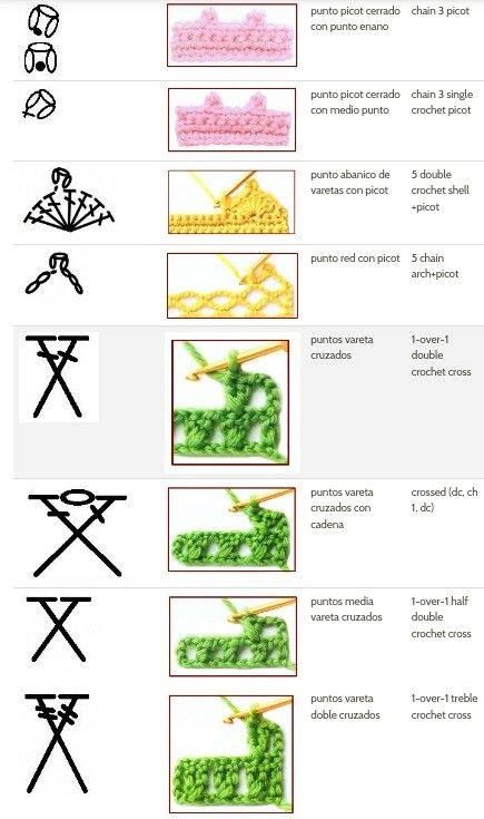Crochet Symbols Glossary from all over the world, Russian, Portuguese, English, Japanese, Spanish and more.