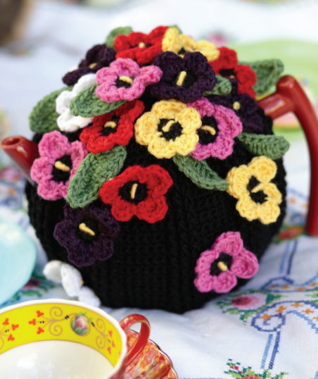 Crocheted Pansy Tea Cosy Free Pattern.
