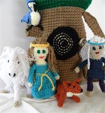 Fantasy Tree Bag with Characters. Includes: Elf Boy and Girl, Unicorn, Bluejay, and Fox by Elizabeth Mareno from Bizzy Crochet.