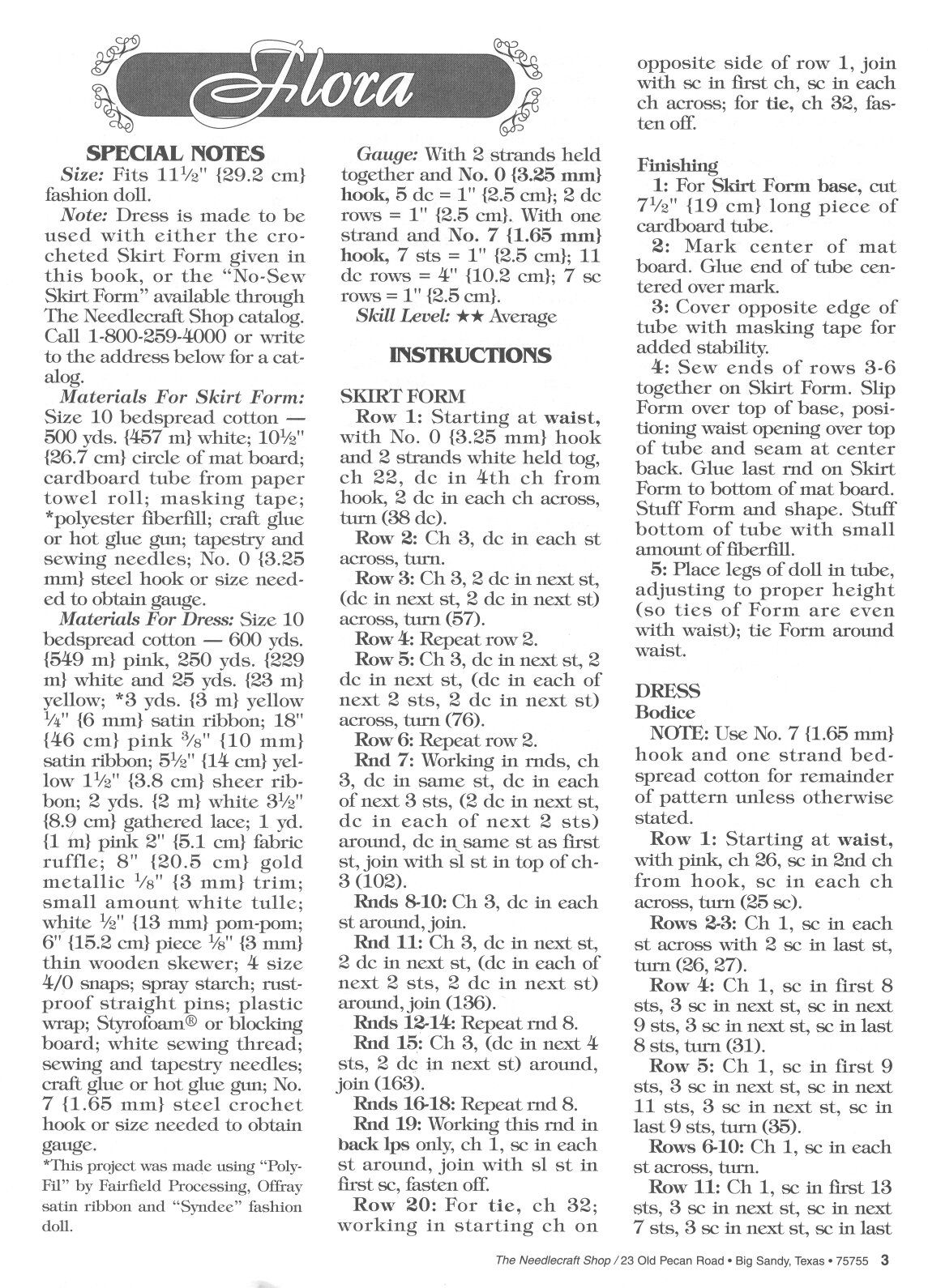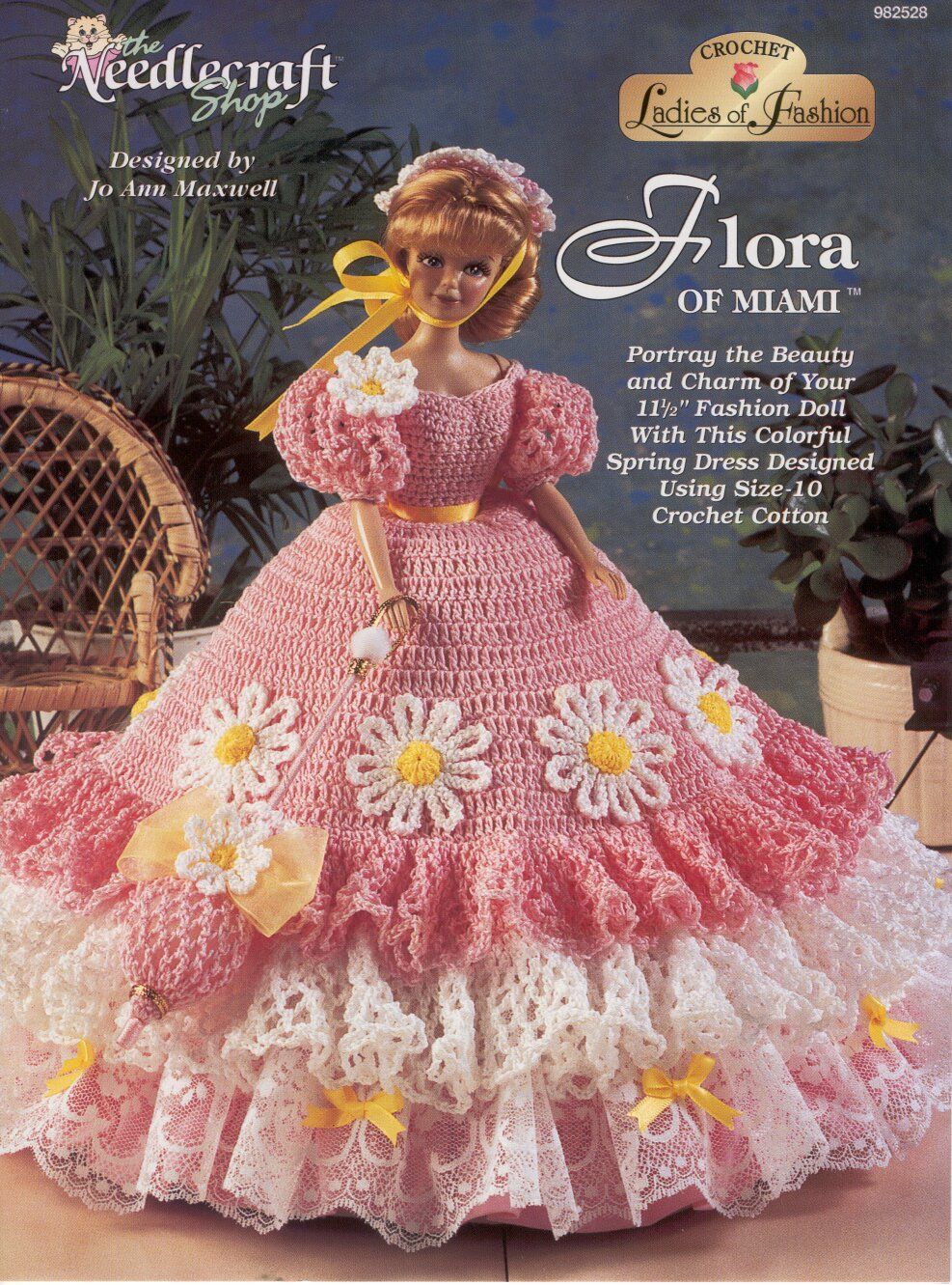 Ladies of Fashion Collection 4 Flora of Miami. Beautiful fancy gown to crochet for Barbie or and 11 1/2 ” doll!