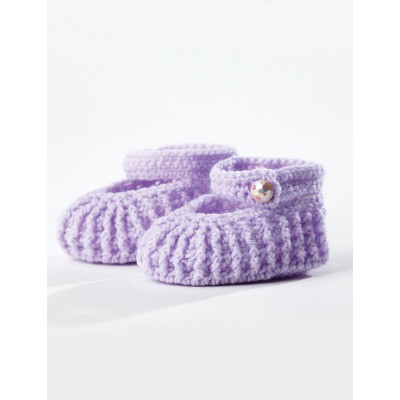 Stylish mary-jane booties up to 12 months. Crocheted in Bernat Baby.