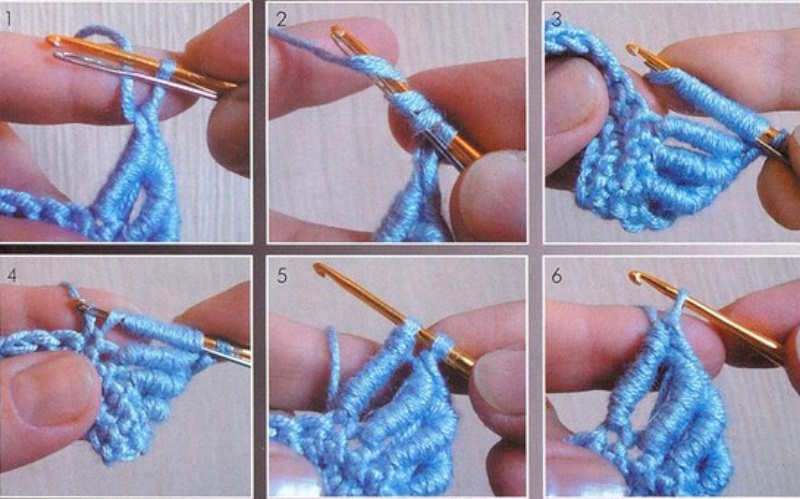- Using thin yarn (600 m / 100 g), make puff stitches (ps) with 4 yarn overs. (2)