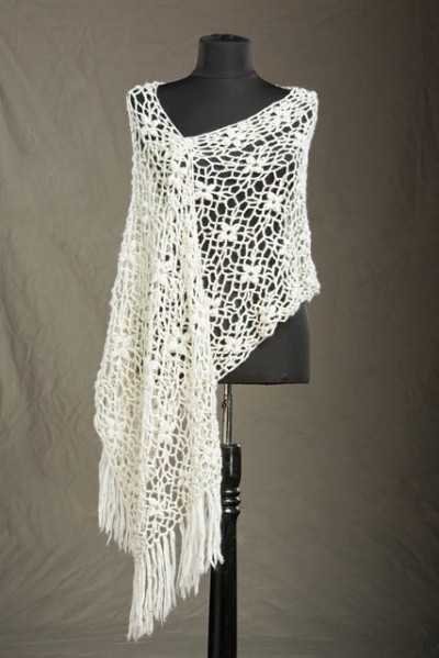 Sparkling Polaris and a crocheted floral motif combine beautifully in this classic design.