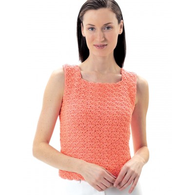 Keep cool this summer in more ways than one. Lacy top is oh-so-pretty and feminine for the office, parties, or any occasion. Sizes S-XL (bust size 34.5 in [87.5 cm] to 42.5 in [108 cm]. Made in Lily Sugar ’n Cream with 4.5 mm (U.S. 7) crochet hook.