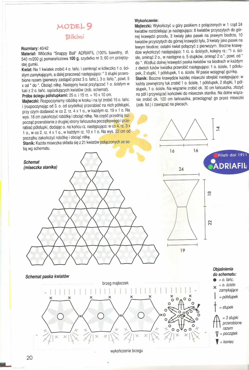 Questo vivace bikini all’uncinetto celebra l’estate e la manualità artigianale. Ideato per le taglie 40/42, il set presenta delicati motivi floreali realizzati con un filo di cotone morbido e resistente, garantendo comfort e una vestibilità perfetta. Realizzato con Adriafil Snappy Ball (100% cotone, 540 m / 200 g) in un vibrante tono arancione, il bikini è leggero, traspirante e ricco di stile artigianale.