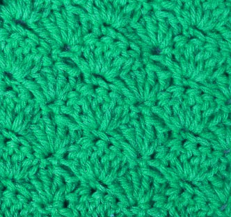 3rd row – 3 tr into 1st dc, * 1 dc into centre of 5 tr, 5 tr into dc, rep from * ending last rep 3 tr into turning ch, 1 ch, turn.