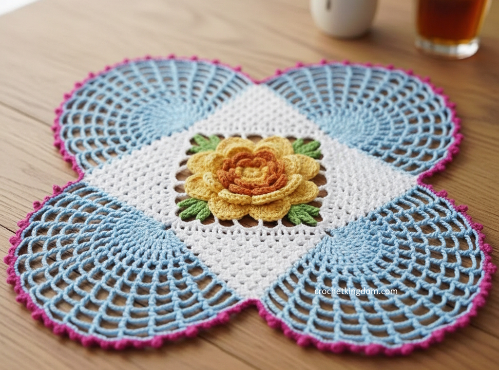 Square with a Rose Centre Crochet Doily Pattern Free.