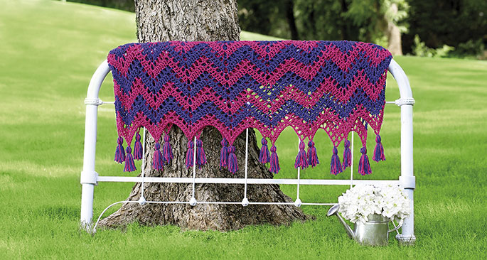 Striped ripple afghan crochet pattern in two colors with tassels. Want to crochet this ziggy, zaggy, beauty of an afghan?