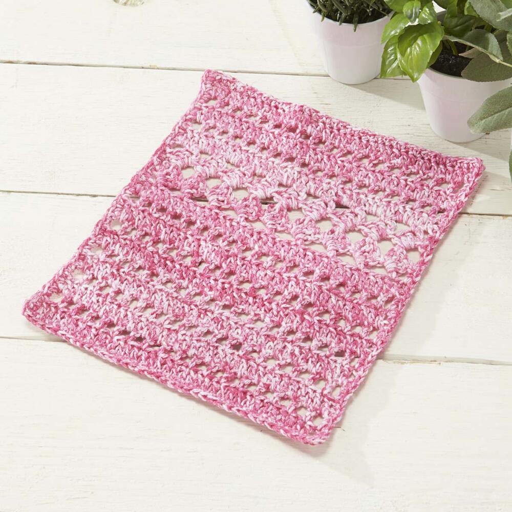 The fun lacework pattern in this pretty dishcloth looks especially sweet in the softly variegated Sudsy Spray yarn.