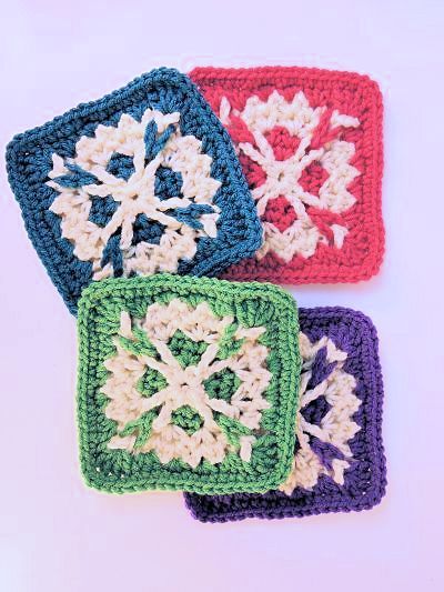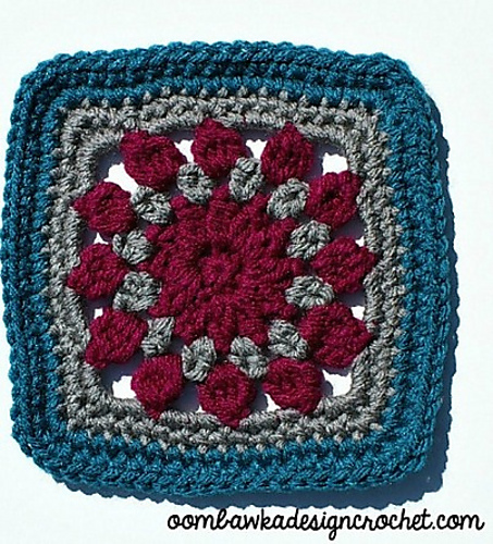 Dahlia Burst Afghan Square 6 Inch Square by oombawka design. 6″ x 6″ square – Hook: 5.5 mm Yarn: Red Heart With Love Free square pattern: link