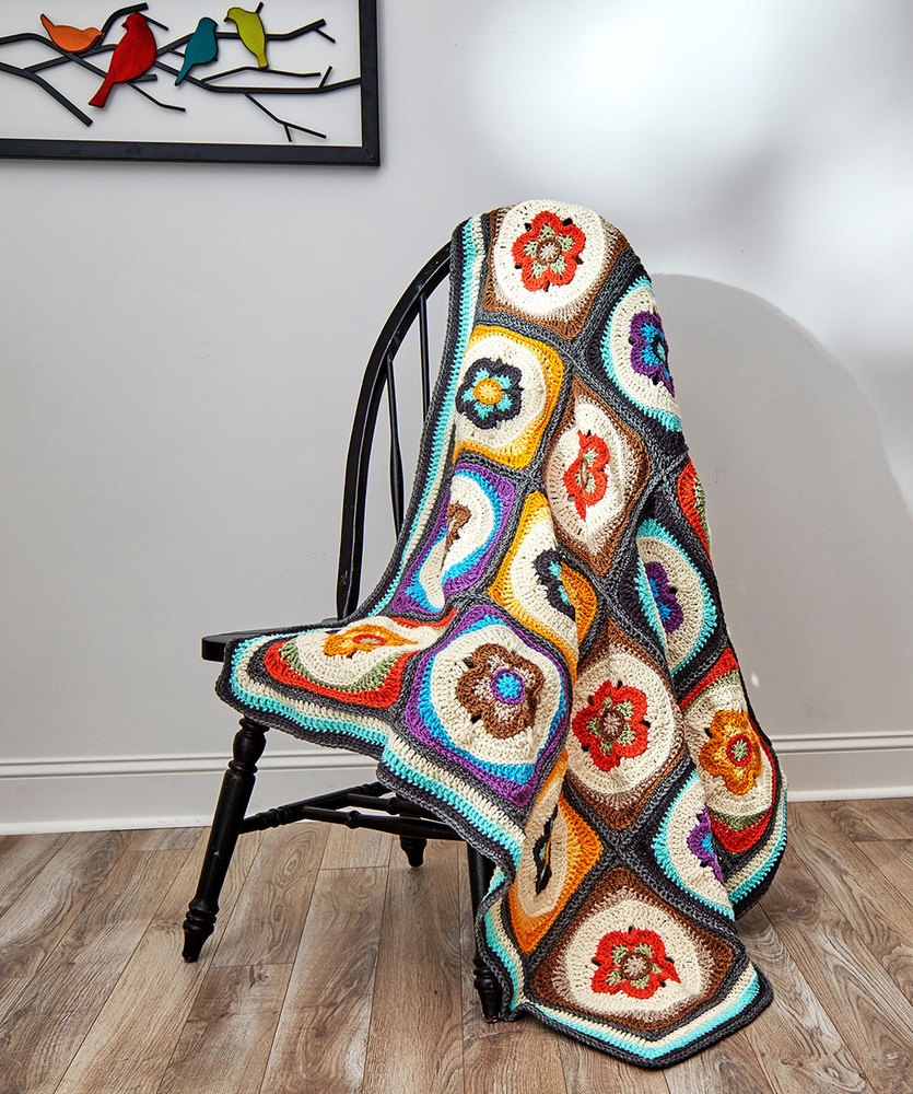 Free Crochet Pattern for a Floral Squares Throw. Skill Level: Intermediate Size: Approx 52½” square. This masterpiece crochet throw features a textured floral motif. Each motif starts as a pretty flower that’s squared off for easy seaming. Pattern features a variety of techniques, including …