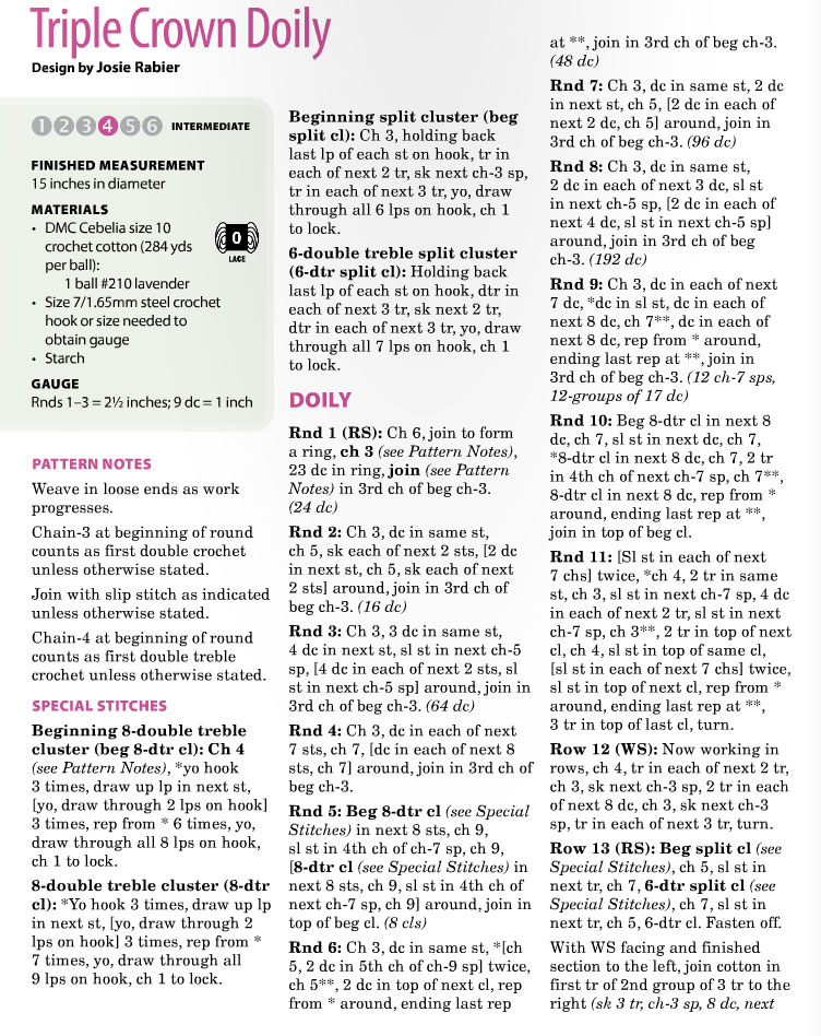 HomeFree Crochet Doily PatternsTripple Crown DoilyTripple Crown Doily Free Crochet Doily PatternsTripple Crown Doily crochet pattern. ***************************************************************************** Leave a Reply Cancel replyCommentThis site is protected by reCAPTCHA and the Google Privacy Policy and Terms of Service apply.The reCAPTCHA verification period has expired. Please reload the page. Δ